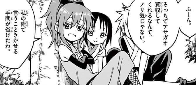 - “Hmm. If you're willing to bribe Asagao on your side, you're pretty into this, aren't you?”