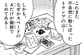 - 「しかも、なぜかスペードのAだけが画鋲でとめてある…」