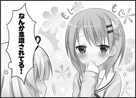 After an accidental first meeting between Cocoa and Syaro, Chino recalls having seen a similar situation in a comic. Rize points out this is where romance often develops. Apart from that conversation, Syaro gets the feeling that this girl she doesn’t know is somewhat beingconscious of her. (Syaro receivedawareness by Cocoa.)