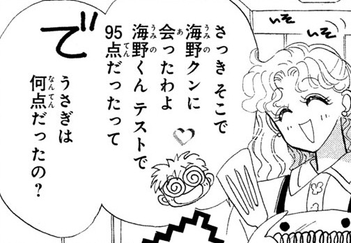 - 「さっき そこで海野クンに会ったわよ。海野くんテストで95点だったって」