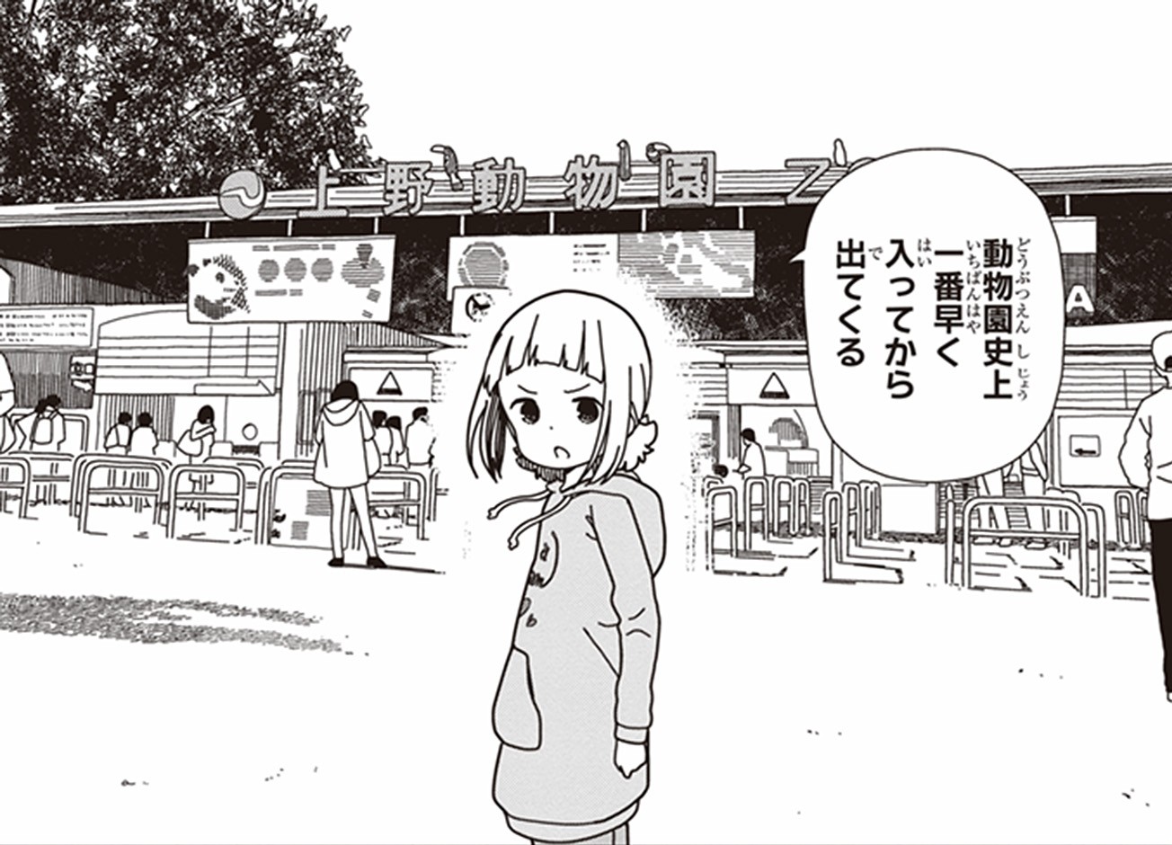 While trying to find something to do, Sacchan and her friends pass by the zoo, which is free for children to enter. Yui asks if Sacchan plans to enter the zoo.