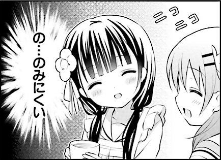 Manga panel from ご注文はうさぎですか? showing example of Difficult to do with 〜にくい.