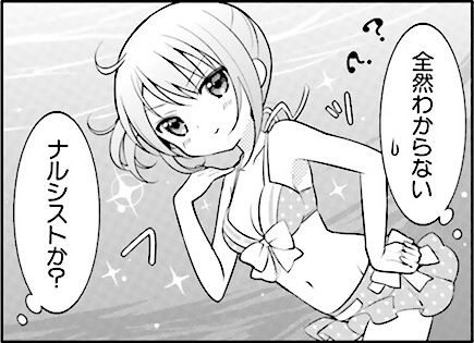 During an underwater-breath-holding contest, Cocoa begins a game of charades. Syaro doesn’t understandat all what the gestures are supposed to mean.