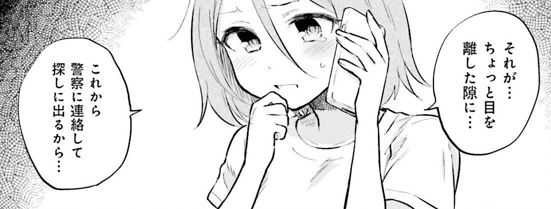 Satsuki leaves Sara, the young girl she’s watching, alone to go heat up lunch. When she returns with the food, Sara is nowhere to be found. Satsuki calls her sister to let her know what’s happened.