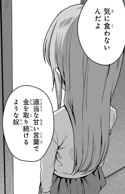 Manga panel from レンタルおにいちゃん showing example of Dissatisfaction with 気に食わない.