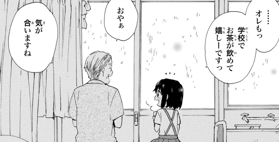 - 「……オレもっ 学校でお茶が飲めて嬉しーですっ」