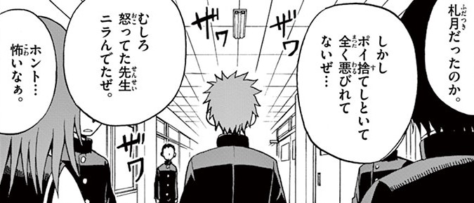 「むしろ(おこ)ってた先生(せんせい)ニラんでたぜ。」