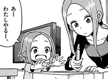 In a bonus story, Takagi is shown as an adult with a child. A package arrives, and Takagi prepares to open it with a box cutter.