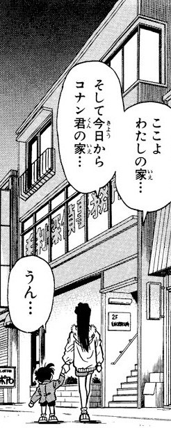 「ここよわたし(いえ)… そして今日(きょう)からコナン(くん)(いえ)…」